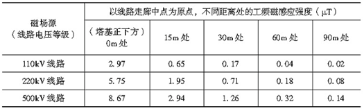 输电线路周围产生的磁场水平与线路中负荷电流的大小成正比例关系。表1显示了美国邦维尔*(BPA)关于各种型式高压架空输电线附近的磁场水平实测调查结果。表1中磁场是对321条电力线路按年度平均负荷计算的平均值。在一年中*高负荷时段内(约1%时间),磁场水平约比表中平均水平增加一倍。