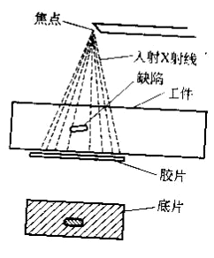 射线照相法是根据被检工件与其内部缺陷介质对射线能量衰减程度的不同,使得射线透过工件后的强度不同,使缺陷能在射线底片上显示出来的方法。如图2所示,从X射线机发射出来的X射线透过工件时,由于缺陷内部介质对射线的吸收能力和周围完好部位不一样,因而透过缺陷部位的射线强度不同于周围完好部位。把胶片放在工件适当位置,在感光胶片上,有缺陷部位和无缺陷部位将接受不同的射线曝光。再经过暗室处理后,得到底片。然后把底片放在观片灯上*可以明显观察到缺陷处和无缺陷处具有不同的黑度。评片人员据此*可以判断缺陷的情况。