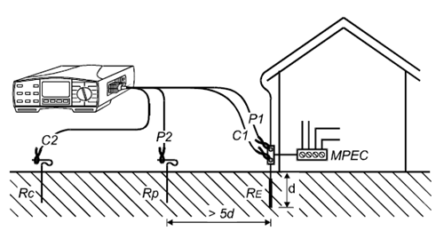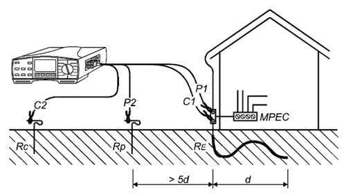 电压及电流测试杆的安装位距离接地系统比较远,因此接地点可看做为一点。其中d为接地系统中,相距*远的两个接地电极的距离。电流探头的距离至少为5d。