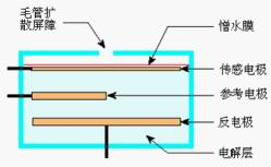 电化学测试方法又称为定电位电解法,是*对二氧化硫的标准测定方法之一。(HJ/T 57-2000《固定污染源排气中二氧化硫的测定定电位电解法》)。其核心器件电化学传感器的结构如图。