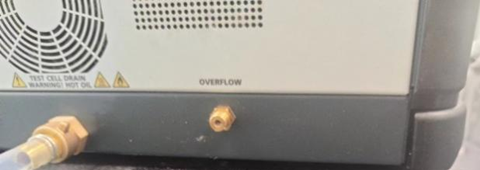 为保证试验结果准确,每次试验都需要清洗电极,用测试油冲洗2-3次,每次测试结束后也会自动排油(可设置,也可手动排油)。排油口需平放置桌面,避免排油时油液倒流使油从溢油口溢出。