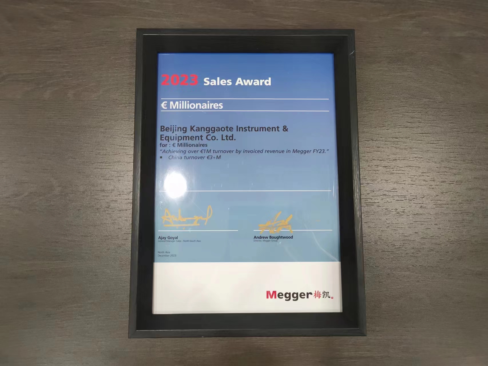 北京康高特仪器设备导读:8868登陆入口荣获Megger China 2023年度销售*,并且再次获得“百万欧元俱乐部成员”奖项,这已经是康高特连续第4年获得此荣誉!