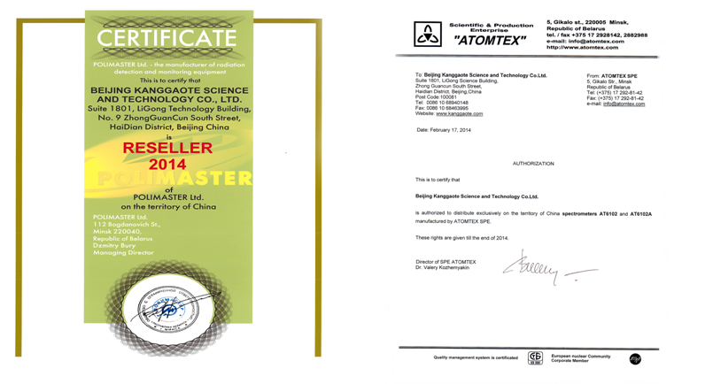多年来,北京康高特科技有限公司通过与国外知名公司的合作,取得了*优惠条件供应仪器设备的资格。其中,白俄罗斯Atomtex公司和Polimaster公司的多款仪器设备一路畅销,获得众多好评。今年Atomtex公司和Polimaster公司按流程对我公司进行二次审核,根据我公司良好经营状况、规范经营体系以及不断发展壮大的规模,ATOMTEX公司和Polimaster公司延长我公司在华代理权时限。今后,北京康高特科技有限公司,将继续为大家推出Atomtex公司和Polimaster公司高品质,低价格的先进仪器设备。