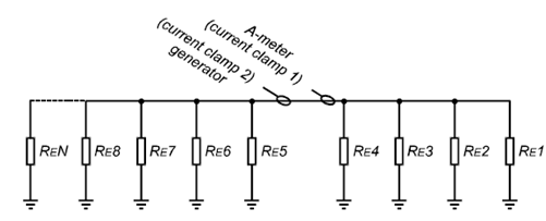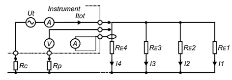 RE1-RE4为待测接地系统中单个的接地电阻