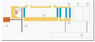 微流红外传感器技术的工作原理为:红外光源①发出的红外光,经过切光器②调制频率后,进入测量气室④;由于二氧化硫等异种原子构成的分子对红外光具有吸收特性,若测量气室④中存在上述气体,则进入测量气室的部分红外光会被吸收,未被吸收的红外光进入检测器⑤。检测器⑤由前气室、后气室、微流传感器⑥组成,前、后气室充满待测组分的气体。在红外光的作用下,检测器前、后气室中的气体发生膨胀;由于存在膨胀差异,会导致前、后气室之间产生微小的流量;微流传感器⑥检测到该流量后,产生交流电压信号,信号经处理后得到气体的浓度。