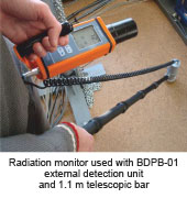 白俄罗斯ATOMTEX AT1125B 为一款辐射检测仪,用于测量γ辐射剂量及剂量率,外接探头BDPB-01与主机连接后,还可测量β表面沾污及放射性核素的活度。该款辐射检测仪能够用于搜查放射源、检测废金属等。仪器内置 NaI(TI)闪烁体探测器,可快速*地对较小的辐射改变做出响应。 此外,仪器的校正功能(能量范围 0.05...3MeV),使得仪器的剂量率测量更加*。BDPB-01 带有 1.7m 延长杆, 使得测量非常方便。